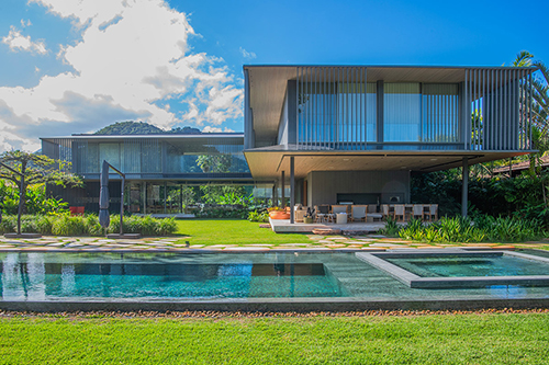 Localizada em um exclusivo condomínio à beira-mar, esta residência em Paraty traduz o equilíbrio perfeito entre arquitetura contemporânea e a natureza ao redor. Com vista privilegiada para o oceano, o projeto valoriza a integração dos ambientes e a entrada de luz natural, criando espaços amplos, leves e acolhedores.