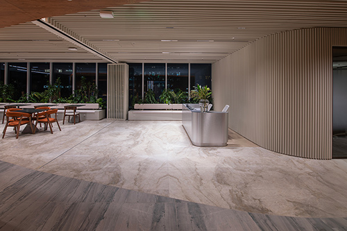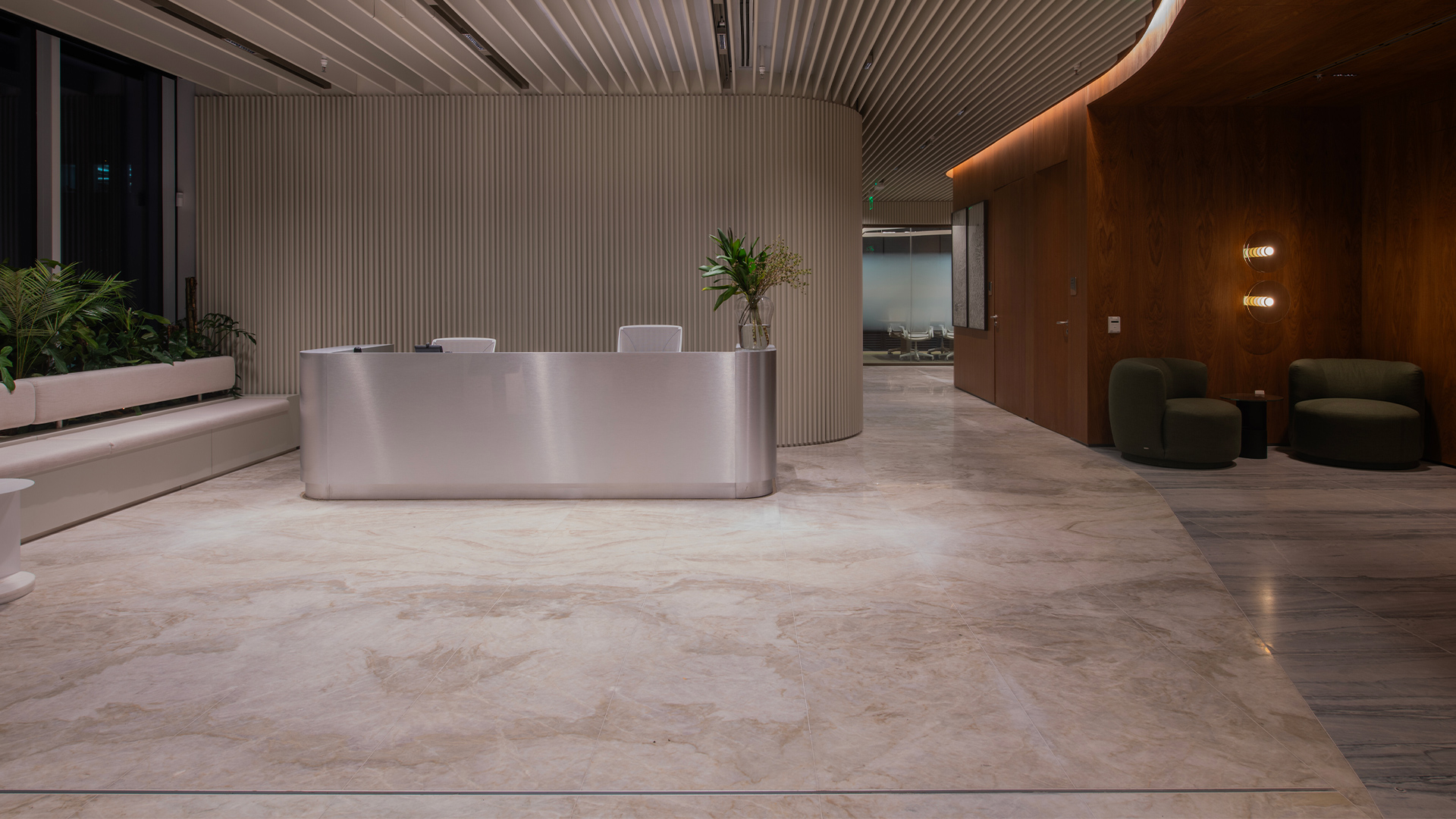 A Di Mármore participou da execução dos revestimentos, trazendo soluções em pisos, paredes e bancadas que valorizam o projeto e garantem durabilidade.
